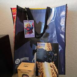 We checked into the hotel then walked the sky bridge over to MegaCon and got our badges and goodies. These are the goodies I got for the ultimate pass.