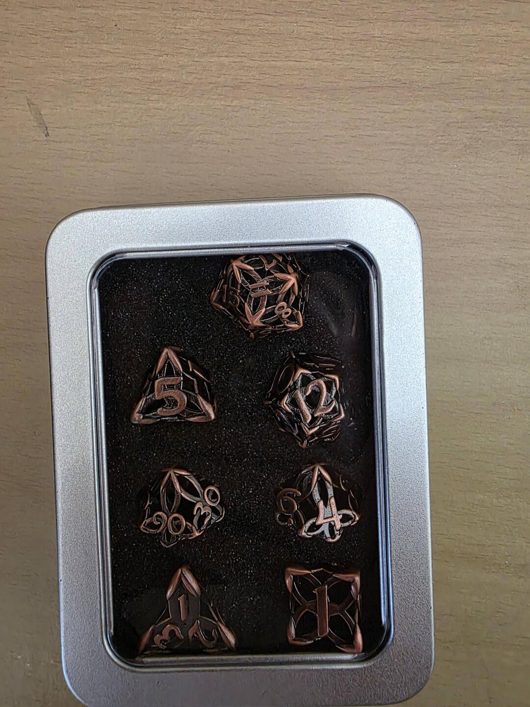 This is where I bought Celtic Knot brass I believe metal dice. They feel real solid and roll nice.