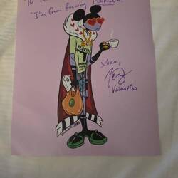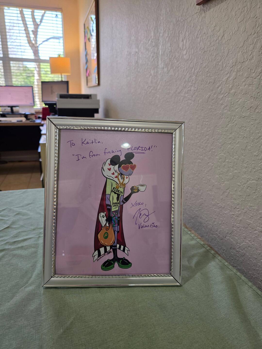 I got the voice actor to sign this awesome photo they had for the convention. I also paid for him to write the iconic line, "I'm from fucking Florida!"