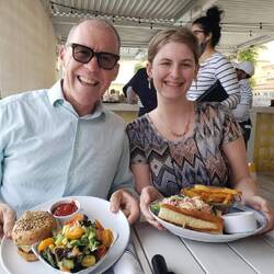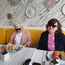 Visited Grandma and Aunt Pat at their hotel then went to grab some food nearby.