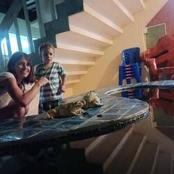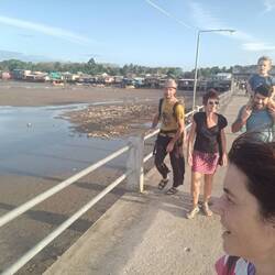 Amanecemos tarde. Nos despierta la familia de Valladolid que conocimos en el aeropuerto, viajan también con dos niñas de 4años y 1 año y medio.Ole! Nos han venido a saludar.