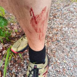 Unterwegs habe ich mir wohl beim klettern über einen umgefallenen BaumMeer informatie