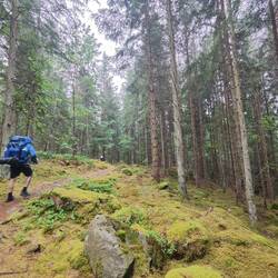 Endlich von der Straße runter geht es durch den wunderschönen Eneskogen. Toller Talblick von einer Klippe, große Felsen mit Geschichte usw.