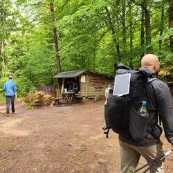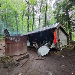 Kurze Kaffeepause im Wald, damit die Akkus wieder voll sind für die letzten Kilometer.