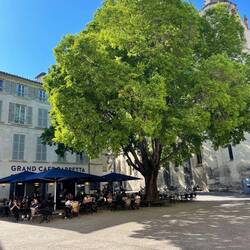 Nach dem heftigen Gewitter gestern präsentiert sich Avignon heute sonnig und warm 😊. Vom Campingplatz auf der Flussinsel Barthelasse rüber zur Stadt verkehrt eine kostenlose Fähre. Dort findenLes mer