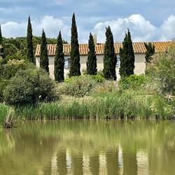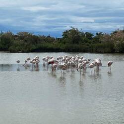 Nach einem ziemlich nassen Tag mit Gewitter und Platzregen ist es heute wieder sehr schön und wir guckten uns die beiden berühmten Tiersorten der Camargue an: Weiße Pferde und sich langsam rosaLes mer
