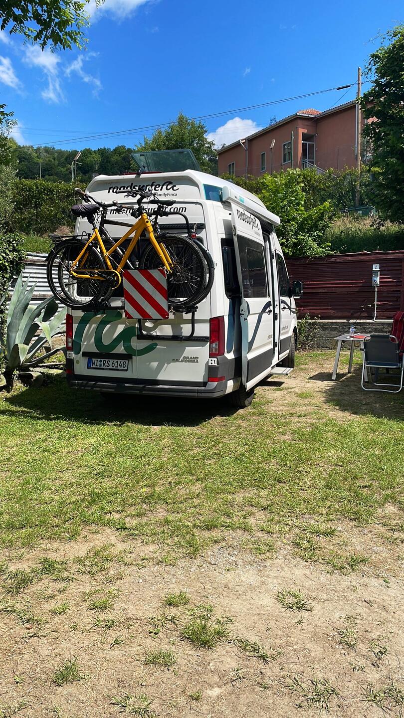 Als Zwischenstation bin ich auf einem Campingplatz mitten im Nirgendwo gelandet, hoch oben in den Hügeln der ligurischen Küste. Die Zufahrt war ein Herzinfarkt-Abenteuer, da die Wege vielleicht fürLes mer