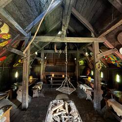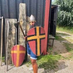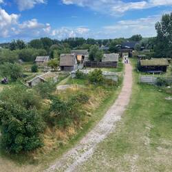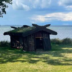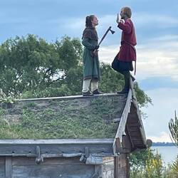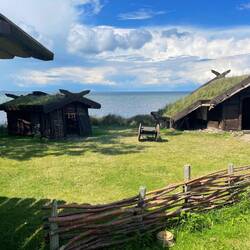 Nach Jorvik, Ribe, Haithabu und Birka ist das unsere fünfte Wikingersiedlung, die wir besuchen. Auch hier wohnen freiwillige Wikingerinnen und Wikinger in den 23 nachgebauten Gebäuden. Wir unterhielten uns mit einigen, lernten eine neue Technik zum Bänderknüpfen und erfuhren in englischen Theaterszenen vom Streit zwischen dem dänischen König Niels und König Erik von Skåne.