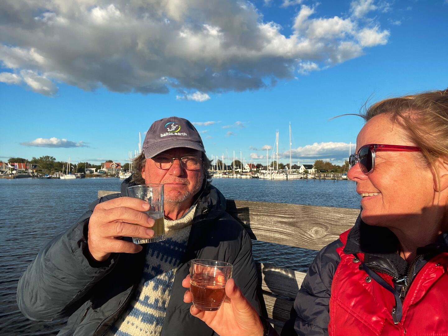 Nach 4 Std segeln und 3 Std unter Motor gibt’s den Ankommer im Hafen - skol 🍷🍺