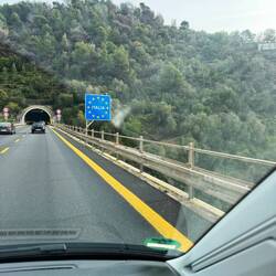 In Monaco hat es die ganze Nacht geregnet - merkt Euch das, es wird nochmals wichtig. Mit dem Anbruch des Tages, verschwinden die Wolken und die Sonne kommt heraus. Auf dem Weg zu Mickys Morgenkaffee müssen wir die Jacken schon ausziehen, weil es in der Sonne einfach zu warm ist. Ein Sweatshirt reicht vollkommen aus. Wir sind beide nicht so richtig fit, der gestrige, lange, Trip steckt uns beiden noch in den Knochen. Also schlendern wir wirklich nur noch einmal am Port Hercule entlang und machen uns dann auf den Weg nach Bardolino. Die Sonne spielt uns in die Karten. Wir fahren noch auf Sommerreifen und müssen auf Höhe Genua über eine Bergkette fahren. Die Autobahn führt dort genau am Treffpunkt der Ligurischen Alpen und des Apennin von der Riviera nach Norden. Es ist jetzt dort nicht superhoch , aber immerhin steigt man auf über 600 Meter und das ist höher, als München. Und in München liegt Schnee. Gut, unsere Engstelle liegt fast 1.000 Kilometer südlich, aber ein Versicherungsangestellter geht unnötigen Risiken gerne aus dem Weg .....außerdem spielt Bayern um 15:30 Uhr gegen die krisengeplagte Eintracht. Das will Patrick gerne sehen. OK, wollte er . Spoileralarm: hat er nicht und bekanntlich war das dann doch ganz gut.