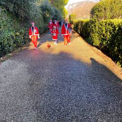 Wir laufen am Christkindlmarkt in Bardolino vorbei und da überholen uns schon die ersten Weihnachtsmänner/-frauen. Es dauert ein bisserl, bis wir kapieren, dass es sich hierbei um ein Weihnachtsmann/-frau-rennen handelt.