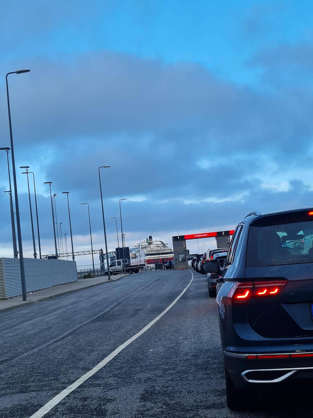 Ich stehe ganz früh auf, damit ich meine Fähre nach Norwegen bekomme. Um 8Uhr muss ich schon da sein und einchecken. Jetzt heißt es warten bis es losgeht.