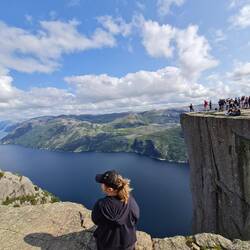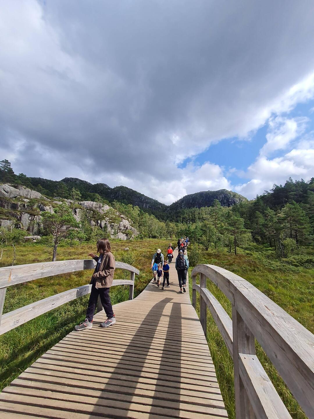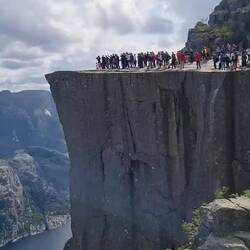 Es geht los auf den Preikestolen. Ein Fels der über 600 Meter senkrecht in den Lysefjord geht.