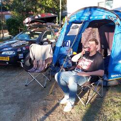 Ondanks het sterke verkeer, veel files, toch aangekomen in Umhausen. In het zonnetje de tent opgebouwd. Nu tijd voor de pre party. En een biertje. 💪💪