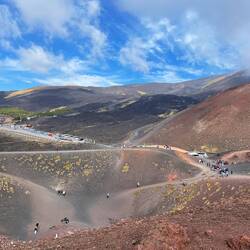 We zijn vanmorgen de Etna omhoog gereden tot 2000 mtr hoogte. Toen met de kabelbaan naar 3000 mtr hoogte. Het landschap in hier uniek.