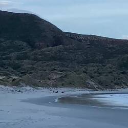 Der nächste Stopp war die „Sandfly Bay“ (20 Minuten entfernt), das ist ein Strand, an dem man gute Chancen hat, Seelöwen und Pinguine zu sehen 🤩. Also stiefelten wir komplett die steilen Dünen und Berge hinunter. Man ist wirklich richtig im Sand eingesunken. Unten angekommen sahen wir tatsächlich dicke, riesige Seelöwen, in freier Wildbahn🙃. Pinguine leider nicht, aber wir haben gelesen, dass man sie meistens auch wenn dann Abends in der Dämmerung bzw. nach Sonnenuntergang sichten kann. Wir liefen zu den Seelöwen hin, aber hielten ordentlich Abstand. Wir fanden es respektvoller gegenüber den Tieren und hatten natürlich auch Respekt vor so großen Oschis.