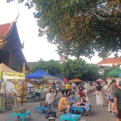 Bunte fröhliche stadt, viele schöne handgefertigte sachen, alte bekannte, sunday night market, muay thai, kunst