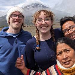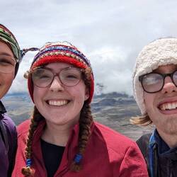 Today we set off for an early morning adventure at Cotopaxi National Park. We had the same guide as yesterday as well as a local Indigenous guide, both of whom were very fun! On the way in our Indigenous guide sang a song in honor of Cotopaxi and then discussed with us the uses of many medicinal plants that grow in the park. We stopped on the way to get some Coca tea (made from the same leaves that make cocaine... Don't worry it's safe to drink, tastes great, and is a local remedy for altitude sickness). We stopped many times along the way to admire the amazing view and we even had a dance celebration in tribute to the volcano (I got to wear an epic orange hat... See pictures). The ride was one of the bumpiest journeys ever. Our guide said it was like getting a massage but honestly felt more like a wooden roller coaster at Wonderland.