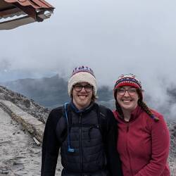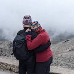 We were blessed with incredible sunny weather in the morning and thus, got the most beautiful view of the Cotopaxi volcano in its entirety. We also were able to see 3 other surrounding volcanos. Once we got to the "parking lot" we began our accent. This was an hour long uphill hike that was breathtaking - in that it was beautiful and literally took my breath away because we were hiking over 4500m in elevation. We took it slow and took lots of breaks to catch our breath and admire the view. Our guides were very helpful and were always checking in on us. As we neared the Jose Rivas Refuge, the wind picked up and a few times Angus and I had to hold each other to stop ourselves from being blown over! At the top (4864m) we stopped for a short rest with some hot chocolate before heading back down. The way down was much faster and we saw a fox which was pretty neat.