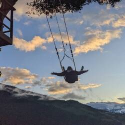 After saying goodbye to Karina and Shannon (sad to see them leave as we were having so much fun but excited to hear about all their adventures in Costa Rica and Panama), we departed Latacunga for Banos. The drive was just as chaotic as last time (only a Spanish version of The Terminator was playing). Our hotel is very beautiful with rooftop hammocks and foosball (I smoked Angus 😂). We took some time to have lunch and relax before leaving at 4pm for Casa Del Arbol.
