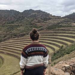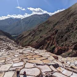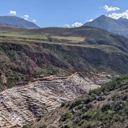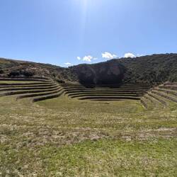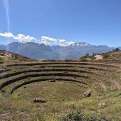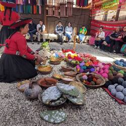 The day started with traveling to the Moray Inca site. We had a short stop at a local store on the way where we learned how the locals dye alpaca wool for handcrafts. We continued to the Inca site, which was made up of 3 sets of circular terraces. These terraces were not used to grow food but instead, used for experimentation. The Incan people would take advantage of the slight changes in temperature and altitude at each terrace to create microclimates and then test to see which crops grew best at each level.