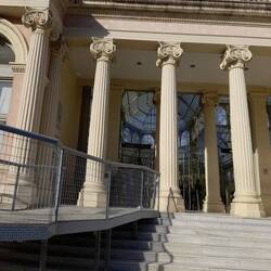Inside people were performing with music and movements. I was more interested in the place itself. So much glass and so much space, very high windows, and also beautiful tiles on the outside. Entrance Czytaj więcej
