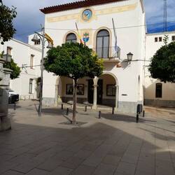 After the beach we visited the center of Pineda de Mar. We took a cup of tea with a small pastry at restaurant La Nonna. Then walked on and came to the city hall.