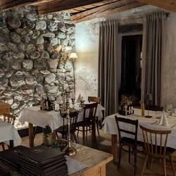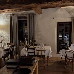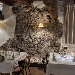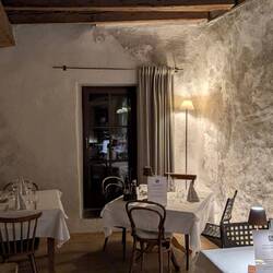 Das Rössl Bianco ist ein historisches Haus in den Meraner Lauben – rustikales Altstadt-Ambiente mit Gewölben/Holzbalken und viel „alte Meran“-Flair.