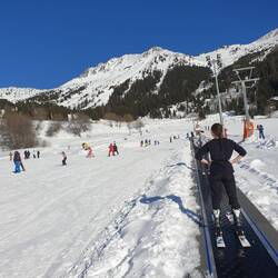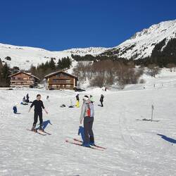 Les Esserts, 'n beginners ski helling is waar Sophie ons 'n eerste ski les gee.