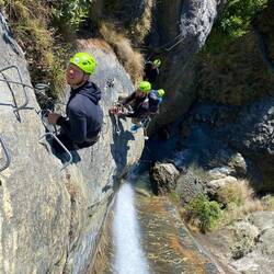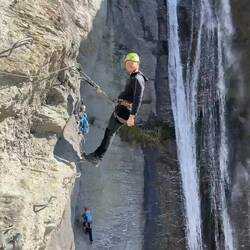 Ce samedi 24 août, Pip notre hôte, nous a réservé une via ferrata (la seule en Nouvelle-Zélande ehe). Nous l’avions vu sur internet mais nous avions vite passé notre chemin lorsque l’on a vu le prix (niveau 1 : 100€ niveau 2 : 150€). La via se situant sur sa propriété, elle n’a pas eu de mal à nous réserver une place je suppose. Rendez-vous 10h avec des guides. Nous comprenons déjà mieux le prix. Après quelques explications nous partons avec 3 guides en tout mais nous étions divisés en plusieurs groupes.