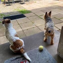 Je ne sais pas si je l'ai déjà mentionné mais la plupart du temps, ils allaient se promener avec des dogsitters hebdomadaires. Cela n'empêchait cependant pas que nous les emmenions se promener dans une forêt non loin de la maison, histoire de jouer avec eux et de fatiguer ces terreurs.