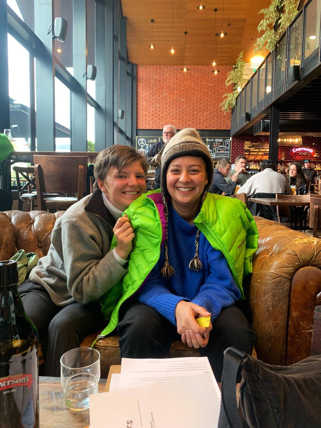 Sue et Mike nous ont proposé de revenir pour la dernière semaine et s’était porté volontaire pour vendre la voiture. Un breton (décidément ils sont partout) a finalement acheté la voiture quelques jours avant notre départ, youhouuu !! Les derniers jours ont été mouvementés avec la préparation de nos sacs, les rendez vous kiné pour moi après mes douleurs dues à la surcharge de sport que j’ai fait enduré à mon corps et les amis à qui nous voulions dire au revoir. Justina est venue nous saluer avec un jolie lit qu’elle a écrit à chacun de nous et Malika a partagé nos dernières soirées au Bar Emerson (une grande brasserie). Nous avons même fini en boîte le samedi, qui l’eut cru en Nouvelle Zélande (ou bien même les boites, nous les avons toutes faites car elles sont toutes situés sur la même place 😂)