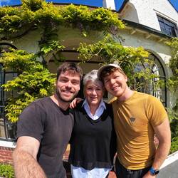 Nick le mari n’est pas trop bavard mais vraiment cool et chic. Pip, la maman est vraiment adorable, mais genre vraiment. Elle veut qu’on se sente à l’aise, que nous ayons assez, que nous travaillons pas trop dur et veut nous faire profiter de notre expérience. Et au dessus de tout, elle nous remercie à chaque fin de journée ou même juste quand elle passe dans le jardin et ça c’est vraiment le must. Ça fait du bien, c’est gratifiant que quelqu’un dise juste merci 🤍 En plus de ça elle essaie de nous faire profiter des aventures non loin de la propriété (Via ferrata), possiblement un tour d’hélicoptère car sa soeur tient une station de héliski (ils emmènent les gens faire du ski dans les hautes montagnes avec l’hélicoptère qui est le seul moyen de locomotion). D’ailleurs en passant devant leur garage nous avons vu un hélicoptère (qui est le leur) à côté d’un bateau qu’ils utilisent l’été. Autant dire que c’est pas une petite ferme. Sans même parler de tout ce qu’ils ont, ça donne envie d’avoir une ferme car c’est juste trop bien la façon dont ils vivent, le boulot etc… mais d’un autre côté c’est une vraie prison dorée car qu’il pleut qu’il vente, que nous soyons mercredi ou dimanche, il n’y a pas de jour de repos et pas de jour de vacances sauf à avoir des employés qui font tout. Le boulot de fermier c’est un boulot à plein temps, il n’y a pas de grasse mat ou je ne sais quoi 🫠 mais comme toujours avantages/inconvénients. L’un n’existe pas sans l’autre 😅