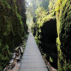 Ca. 400 Stufen nach unten. Und jede Abzweigung ist sehenswert. Hier Bekanntschaft mit einer Frau gemacht, die den Malerweg läuft (ca. 120km).