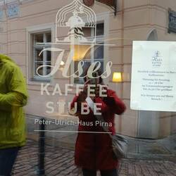 Regenwetter, sind kurzentschlossen nach Pirna, essen im Gambrinus und Kaffee in der Ilse.😀