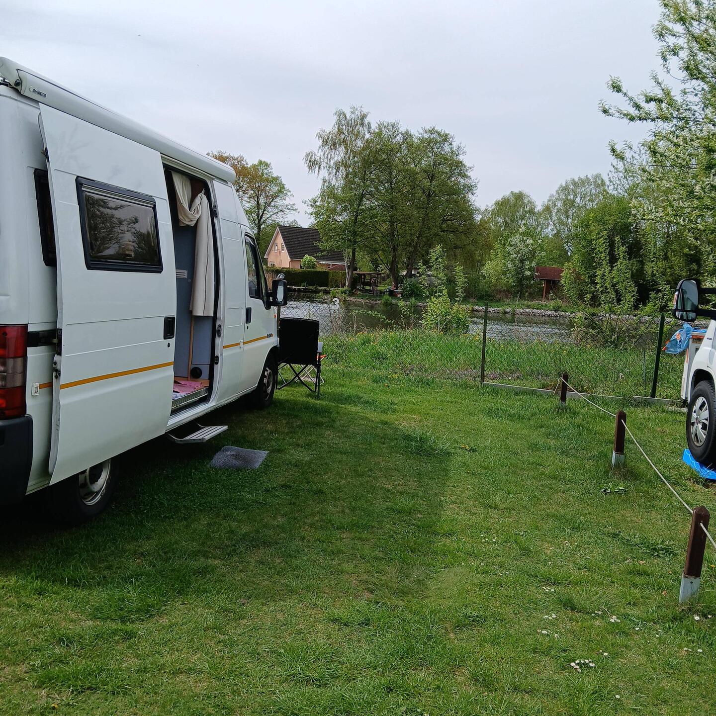 Halt am Havelkanal. Hier ist ein Stellplatz am Havelkanal, man kann Schiffe gucken.