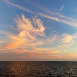 Another great day! Woke up to just a little bit of clouds and you could see the storm we were going around in the distance. By the end of my watercolor class it was sunny and gorgeous! I am on the sunny side of the ship this time (though the sun sets on the other side) and I had my door open and enjoying the warmth and sun all day! It was gorgeous!