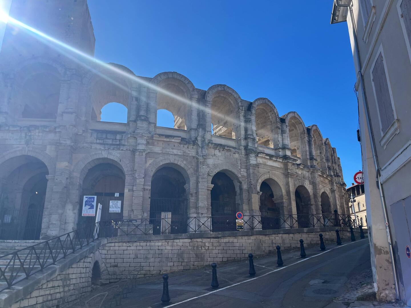 Arles is a small, beautiful city full of Roman monuments, but I will remember it for the wind. The Mistral. I’m sure I’ve read about it in novels. In Hemingway stories about the Spanish civil war, before they cross the border from France? In Villa Air-Bel, a book, loaned to me by Roberta Hamilton, that is about a group of German and French “enemies of the Third Reich,” artists and intellectuals living as refugees in occupied France, the Americans and French who support them, and the house where they take refuge near Marseille, and that is now serialized on Netflix? The inspector Bruno murder mysteries, which I love, that are set in Perigord? I just looked up the Mistral in literature and while I didn’t find the novels I was looking for, I did find a history of France, as shaped by the Mistral. It’s by Catherina Tatiana Dunlop, if you are interested. This wind is pushy and intense and, it seems, relentless. It rearranges things on the street — potted plants, outdoor furniture, scaffolding. It’s loud and cold. Easy to imagine that it has shaped the history of France! My first task this morning was to buy gloves to replace the ones I lost yesterday (maybe because of the wind?). It looks like I will be walking with the wind for at least a week.