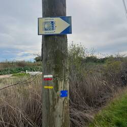 This morning, the path made big zigzags across the countryside. So for a while, I was walking into the wind, which had its own ideas about how much ground I should cover. Then I would turn a corner, and get pushed sideways into some bushes or towards a canal. The few times the wind got behind me, I flew, trying to avoid puddles and deep ruts, not quite under control. Halfway through the day, my legs felt exhausted, not joints or any specific muscle, just legs, from, I think, having to work so hard to keep me vertical.