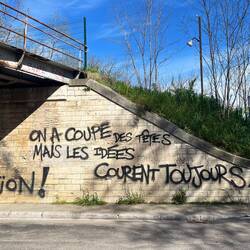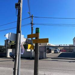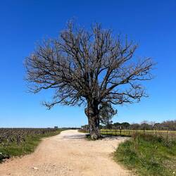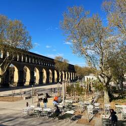 Blessedly short day today. I slept in, dawdled over my nespresso coffee and did not leave the gîte until 10. Beautiful sunny day but a bit chilly. Two jacket morning. The route today connected the bedroom community of Vendargues to Montpellier. Last night the gite owner called it 12 kilometres of ugliness. It wasn’t. It certainly wasn’t the most beautiful landscape, but it was fine. Leaving through the outskirts of a town is often not beautiful. But it’s interesting. You see people at work. And in this case there were lots of people around, like the man on his bicycle who stopped to chat about the Camino with me. He has walked it (which one exactly I’m not sure) four times. He loves it. Me too!