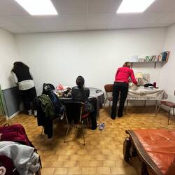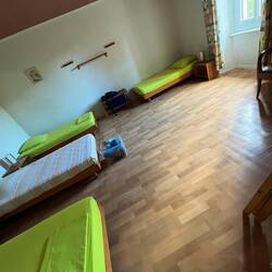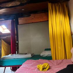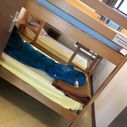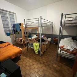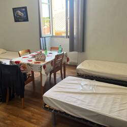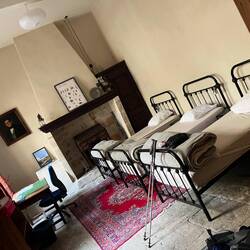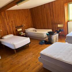 The instructions were to go to the town hall to pay and register. Door to the gîte is always open. No key. Like everyone, the woman there was very kind. Full of information, making sure everyone was okay. A volunteer takes the reservations on her phone. And then a woman is paid by the village to clean. It’s spotless. Very simple, old building. Two small rooms. Mostly bunk beds but no one has to sleep on top.