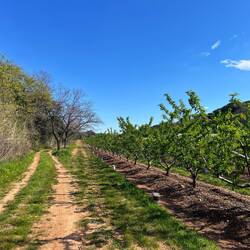 Just before the end of the day there was another huge tree down. This one over a few rows of grape vines. Both trees were some kind of pine. We assume they fell in yesterday’s big wind.