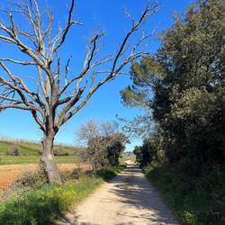 The afternoon dragged a bit - or I did. Nothing open in any of the (very beautiful) villages. I took two big breaks, which I don’t usually do. At one point a woman came up the path to say a tree had come down a little ways along, and she could not get by. She said we had to go up the road instead. I stayed behind to go have a look. She was right. It was massive. Fence along the only place one could have gone around. So I went back out to take the detour, which was maybe a kilometre. It put us onto a bike path that would eventually cross the Camino. It also opened the opportunity for a short cut at the other end, a way to skip one of the villages (the one up the biggest hill). I should have taken it! But I was hopeful something would be open. No luck.