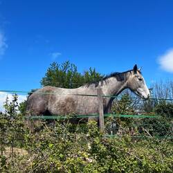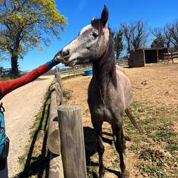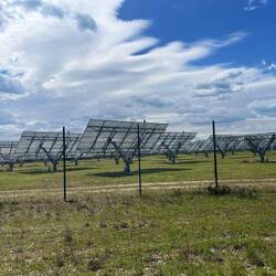 The landscape today, after the outskirts, was starting to have some small ups and downs. It’s rocky and dry. But there were quite a few flowers. A river with small waterfalls. Some brooks. Lots of horses. A humongous solar farm that took me about 10 minutes to walk past it.