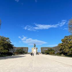 No Camino markers for ages in the city. I was constantly checking the gps tracks. The exit from the city goes via a string of huge monuments. A triumphal arch. A massive statue of Louis XIV on horseback. A “chateau d’eau.” An aqueduct. All of them as impressive as they were designed to be.