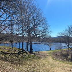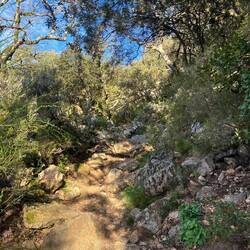Even the variant had a variant. I took the longer path that, I think, had easier walking and for which I had a GPS track. The other option was shorter, following a small river, lots of rocks. There were day hikers out on Easter Sunday. And a couple of groups of trail runners and a few cyclists. Tge most people I have seen.