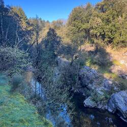 There were a couple of very small villages with no services, except for one that had a bar that is only open on Wednesdays. The part of the route that was not easy, was a very narrow, sometimes eroding path that went up high over the absolutely speeding, terrifically noisy gave, the river coming down from the mountains. Scary. I talked out loud to myself the whole way — about 2.5 kilometers. Ugh.