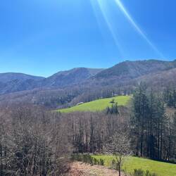 New word today: gave … a river that comes from the mountains. The walk was parallel to the gave d’Aspe. Super green, small farms, animals, and eventually, great views.