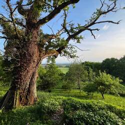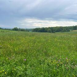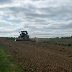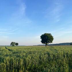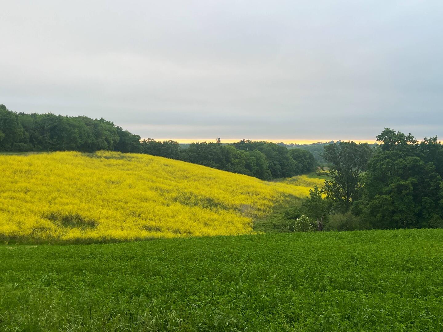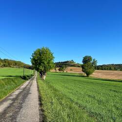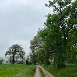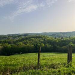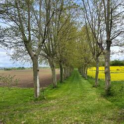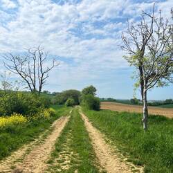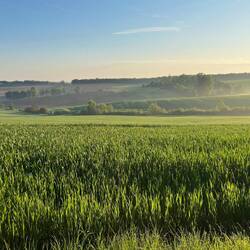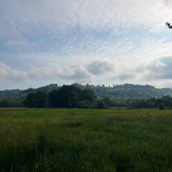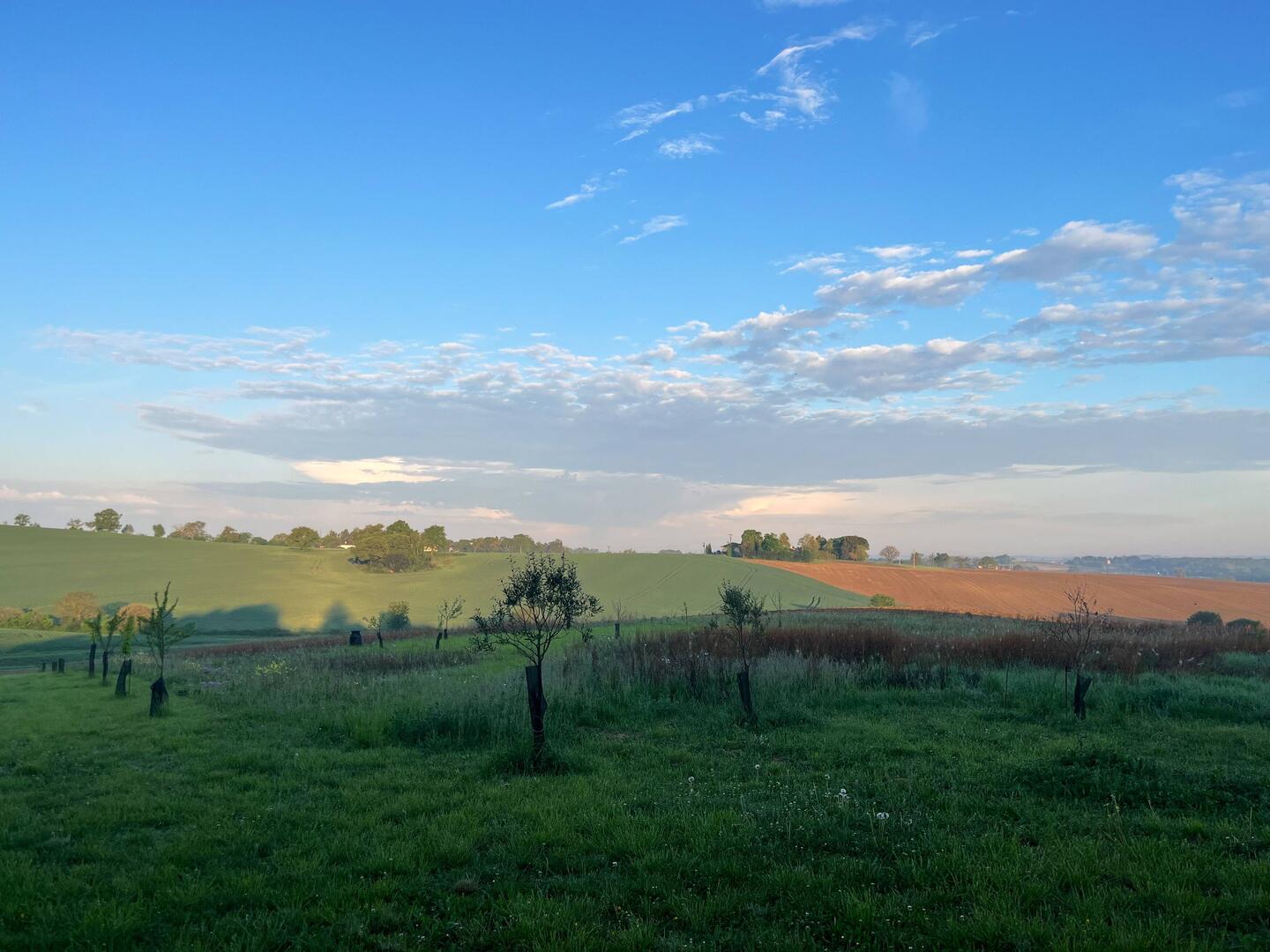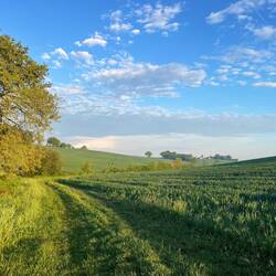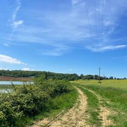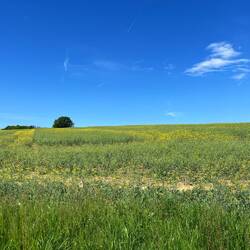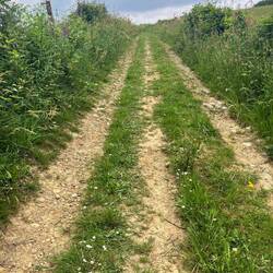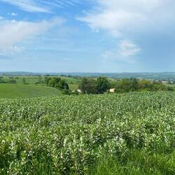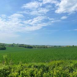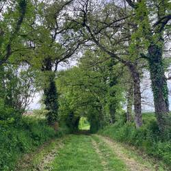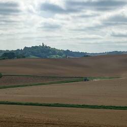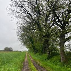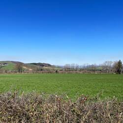 The landscape was rolling hills around flat valley bottoms, agricultural fields on the hills and on the flats, woodlands around the edges. Yesterday there was a field where the farmers had clearly changed their minds about letting people cross it. You could see the path in between the crops - about 50 metres from one side of the field to the other. But the GR directs you to circle the whole field instead. I was obedient, but annoyed. Today the path clearly went directly across a massive field. The farmer had changed the pattern the plough made in the earth to show you where to walk. I always feel weird walking across planted or soon to be planted fields. We certainly don’t do that at home. As I got to the far side today a man drove right by me in a huge tractor and waved. Fields as far as you could see. Tractors on all of them.