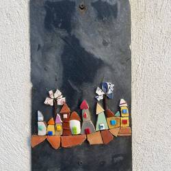 Lots of the houses in Anglés have outside walls covered in thin slate tiles. Apparently, it is to protect the house from humidity or moisture.
